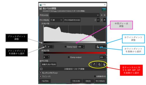 通常、デジタルカメラで撮影した画像では、画像のR, G, B チャンネルのレベルが大きく間違っているということはあまりありません。しかしフィルムなどをスキャンした画像では、スキャンした結果において、チャンネルのレベルがおかしくなって色被りしている…